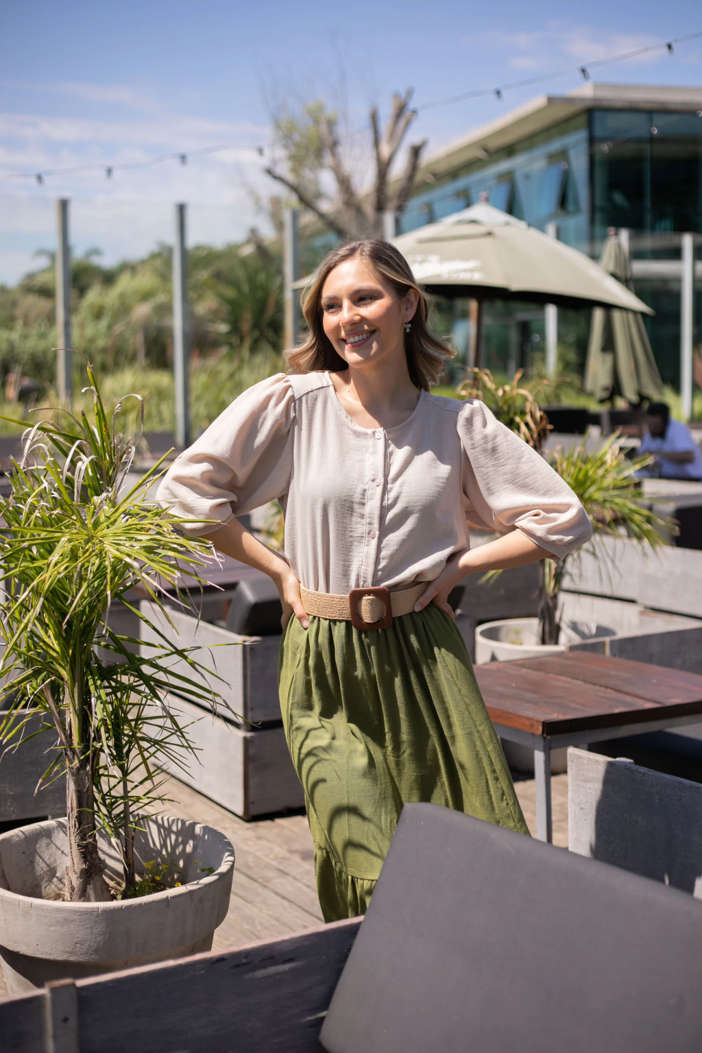 Diseñada pensando en vos, esta falda de lino elastizado ofrece el equilibrio perfecto entre estilo y confort.