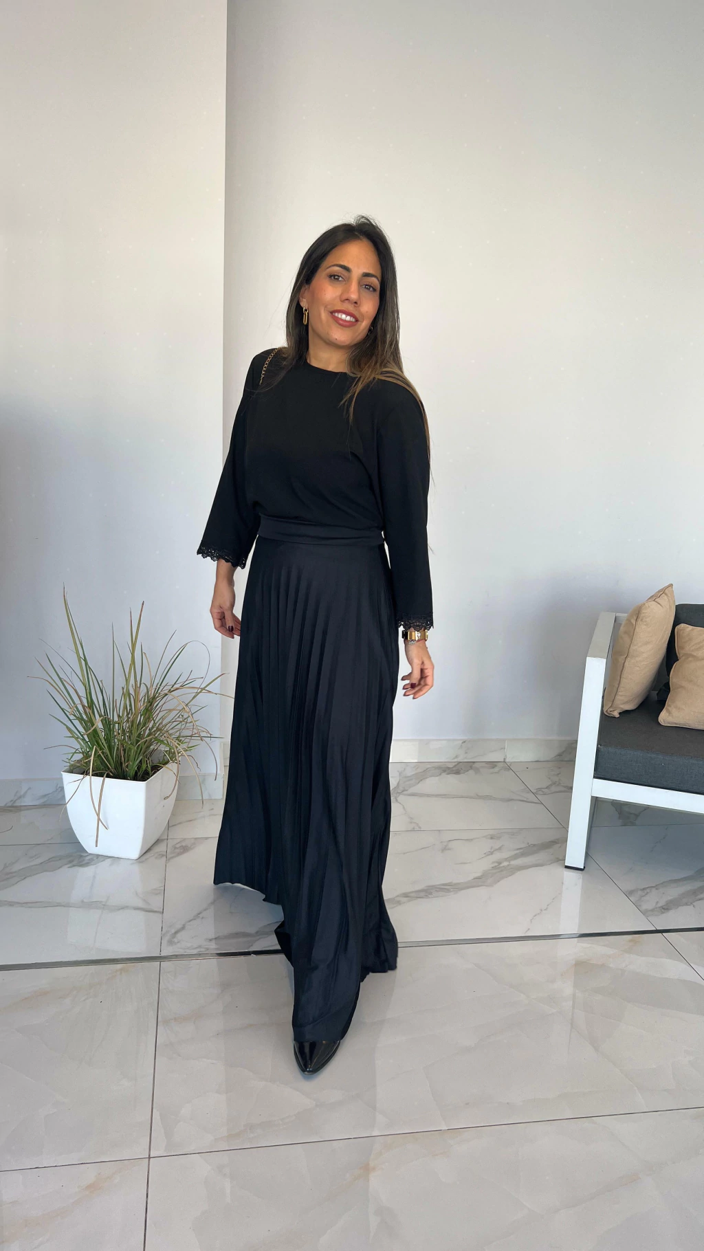 Descubrí la elegancia de la Maxi Falda Plisada Luxe, diseñada para ofrecerte comodidad y estilo en cada paso. Su cintura con elástico ancho garantiza un ajuste perfecto, mientras que su confección con forrería aporta un acabado impecable y confortable.